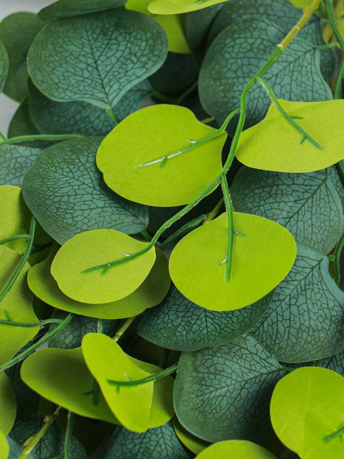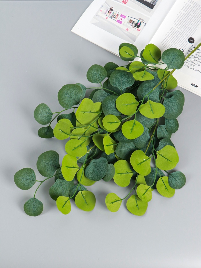 * Универсальный зеленый цвет: Классический зеленый оттенок подходит к любой палитре интерьера. Эвкалипт гармонично сочетается с другими искусственными цветами и травами, служит фоном для ярких соцветий или работает как самостоятельный декор.