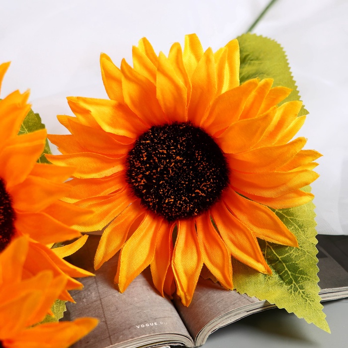 * Эстетическое разнообразие: искусственные подсолнухи высотой 60 см, сочетающие возможности создания композиций с другими элементами декора. Яркие оранжевые лепестки текстильного цветка добавляют выразительный акцент в интерьере.