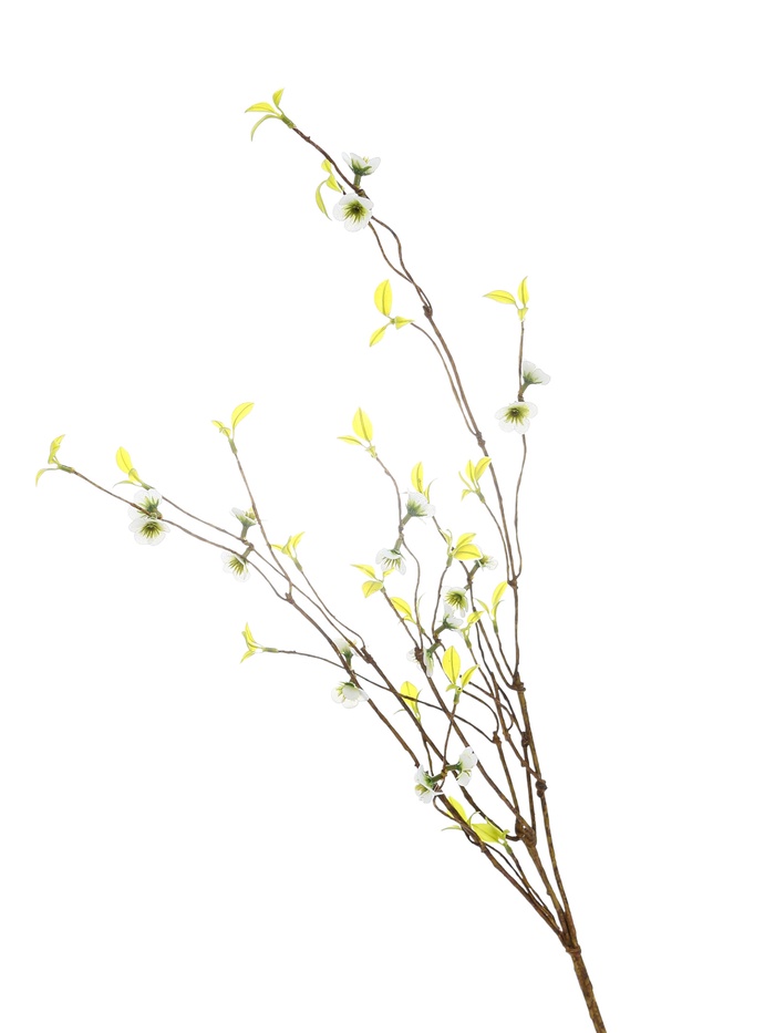 * Реалистичные текстильные соцветия: Каждый цветок выполнен из качественного текстиля, который передает нежную фактуру лепестков. Белые бутоны и полураспустившиеся цветы выглядят естественно, создавая впечатление цветущей ветки.