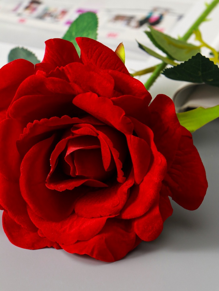 * Универсальность красной розы: Классический алый оттенок делает эту розу универсальным элементом декора. Она дополнит праздничный стол, станет изящным штрихом в гостиной или трогательным подарком, символизирующим вечные чувства.