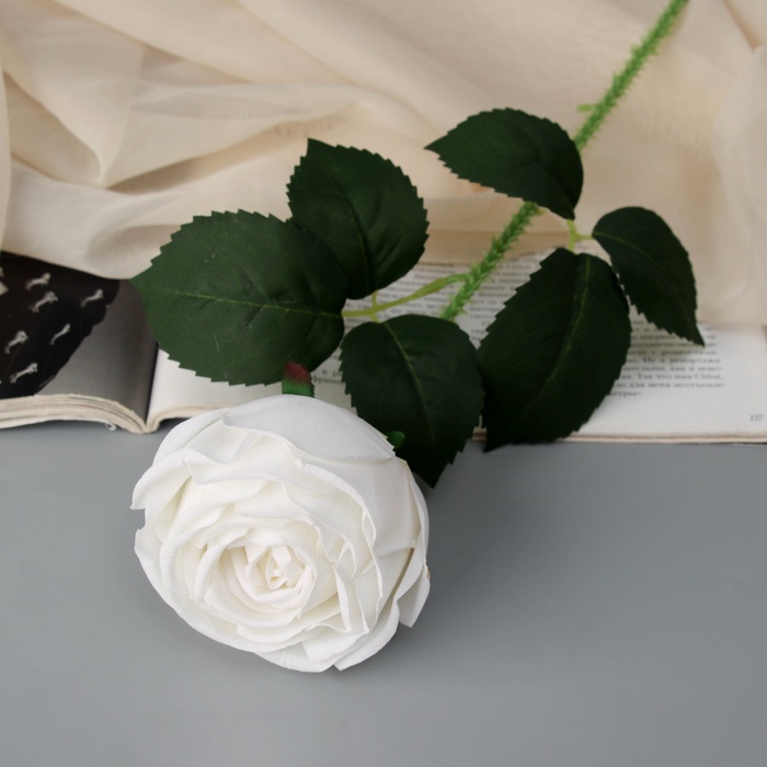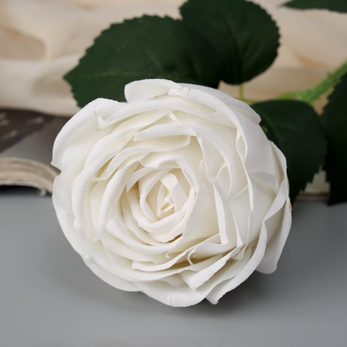 * Реалистичная текстильная роза: Лепестки из качественного текстиля тщательно проработаны, повторяя естественную структуру и нежность живого цветка. Белый цвет символизирует чистоту и изысканность, идеально вписываясь в любую палитру.