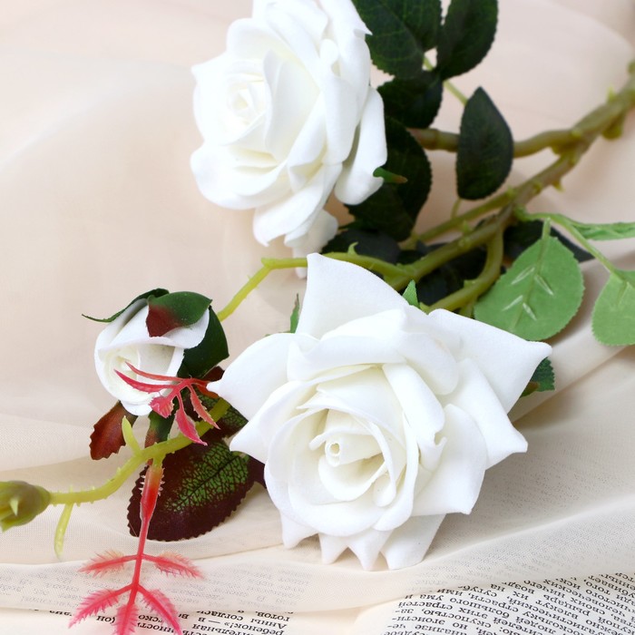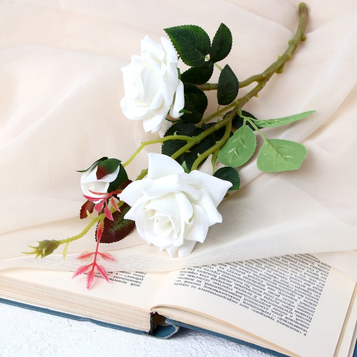 Цветы искусственные «Розы с шипами», 8×40 см, белые