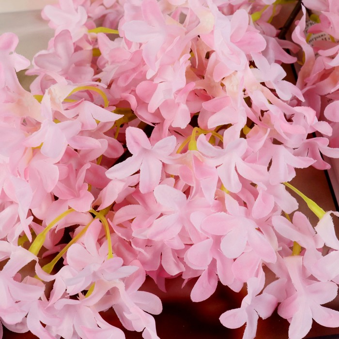 * Пышные розовые соцветия: Каждая кисть искусно собрана из множества текстильных цветков, повторяющих форму и нежность живых. Розовый оттенок – от приглушенного до насыщенного – добавляет в интерьер мягкие, романтичные акценты.