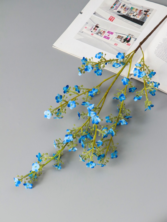* Реалистичность и нежный цвет: Цветы выполнены из качественного текстиля, который точно передает естественную фактуру лепестков. Мягкий голубой оттенок гармонично сочетается с пастельными, классическими белыми и современными серыми интерьерами, даря им свежесть.