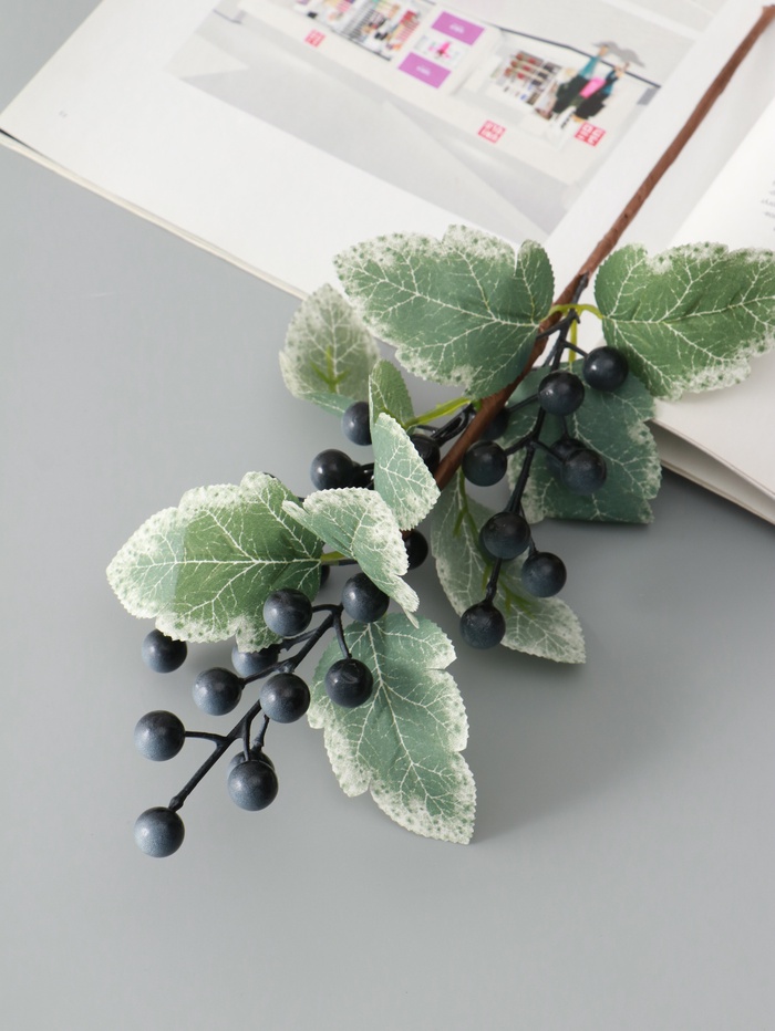 * Насыщенный синий цвет: Глубокий оттенок синих ягод привлекает внимание и создает выразительный контраст в букетах или интерьере. Цвет остается ярким долгие годы, не выгорая на солнце.