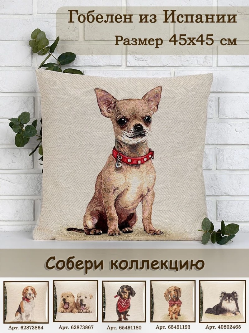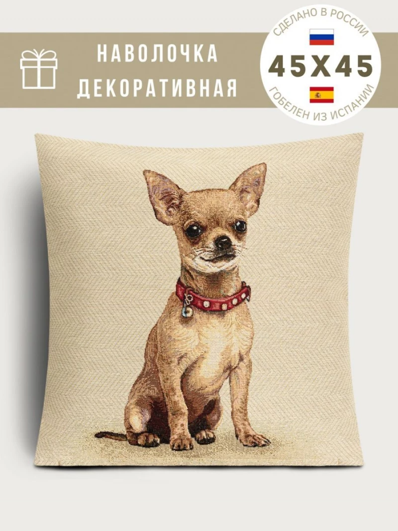 Породы собак Чи хуа хуа Красный ошейник Наволочка 45х45 см 2100410 твид