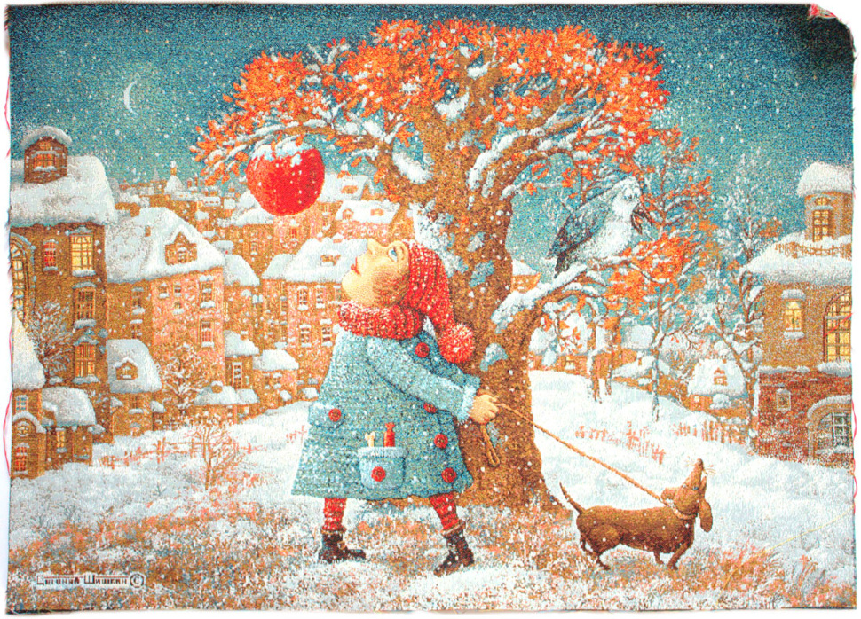 Купон изготовлен по картине ивановского художника Евгения Шишкина "Прогулка". Заготовка для вставки в багетную рамку или для пошива декоративной подушки.
