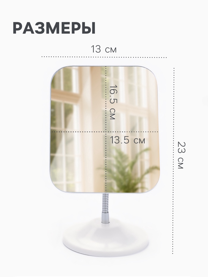 Зеркало настольное, на гибкой ножке, 23×13 см, (16.5×13.5 см), белое