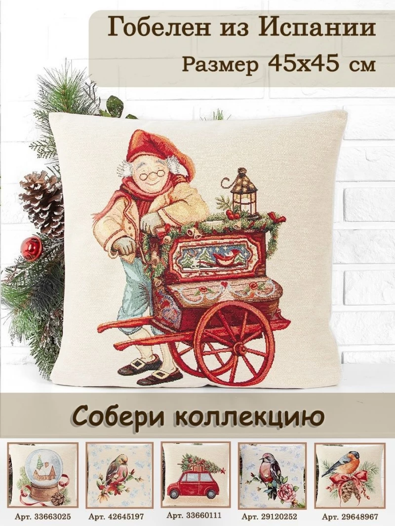 Ретро открытка Шарманщик Наволочка 45х45 см 2103537