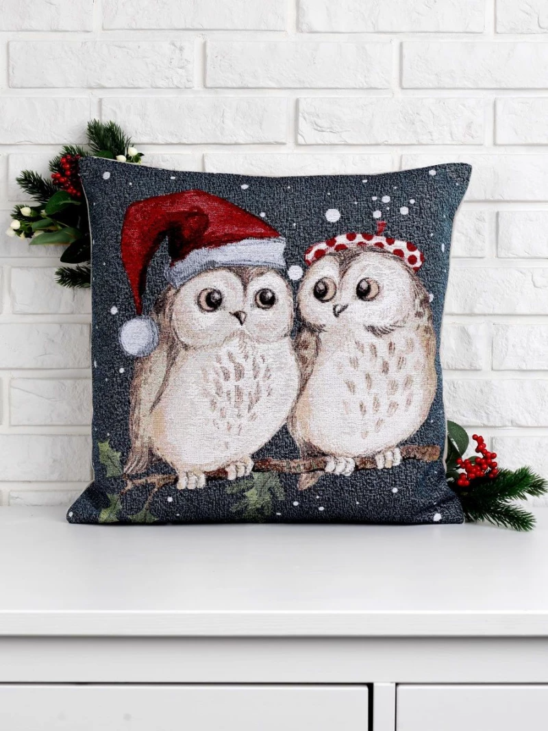 Ретро открытка Совушки Наволочка 45х45 см серебро 2103538