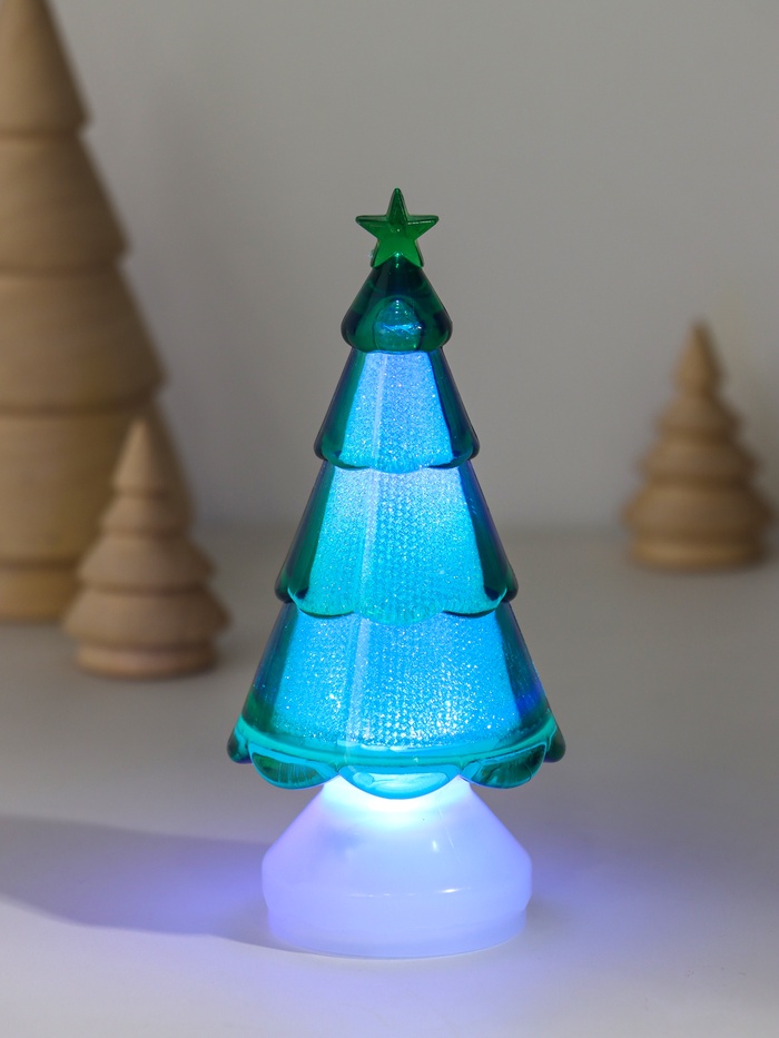 Фигурка светящаяся RISALUX «Ёлочка со звездой», LED-ночник, RGB, 3×AG10, зелёный, 5.5×5.5×11.5 см