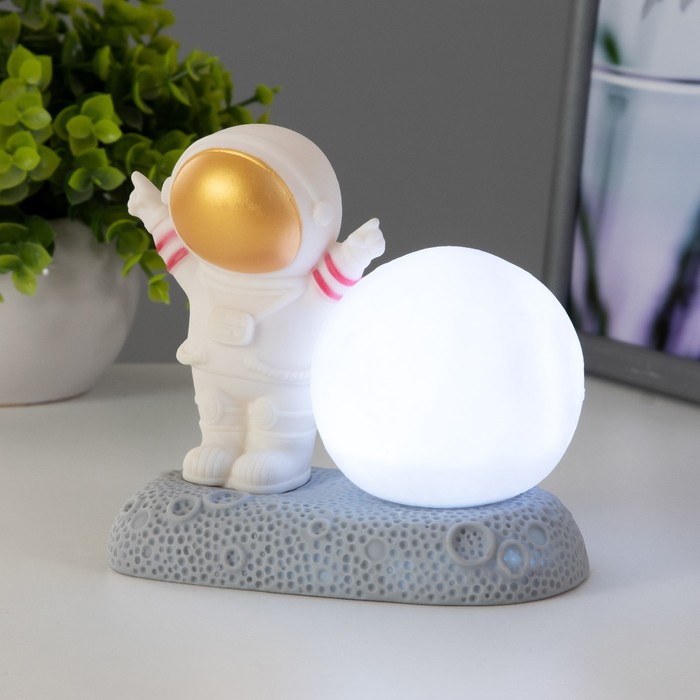 Фигурка светящаяся RISALUX «Крутой космонавт», LED-ночник, 2 Вт, RGB, от батареек 3×LR44, бело-золотой, 11×6×11 см