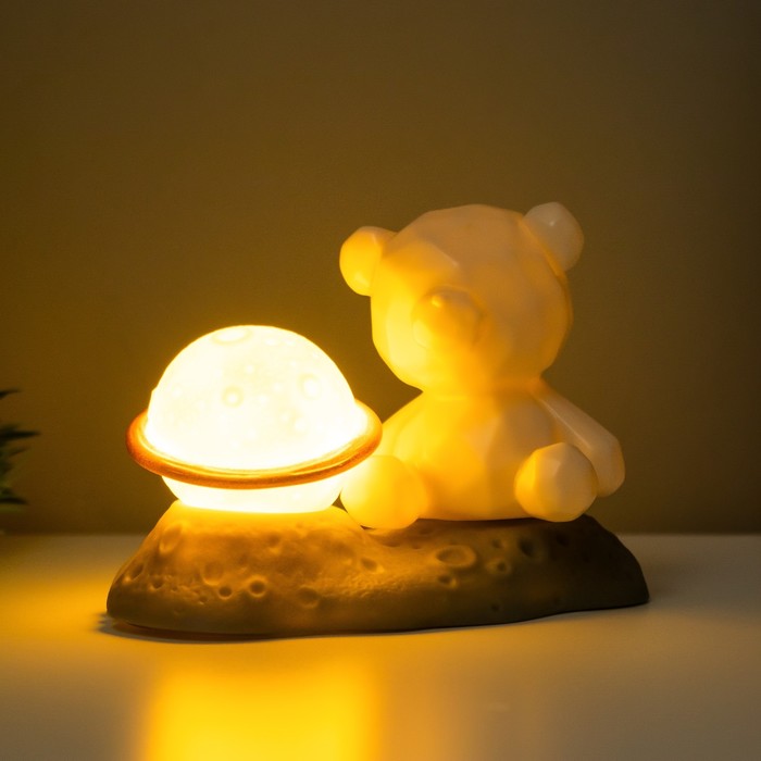 Фигурка светящаяся RISALUX «Медвежонок у Сатурна», LED-ночник, 2 Вт, LR44, 5×8×13 см