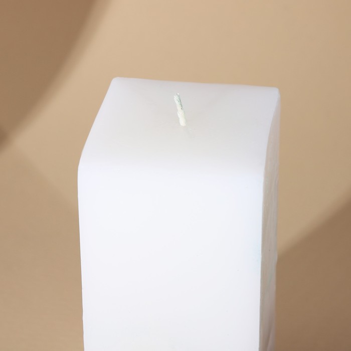 Прямоугольная форма свечи, белый цвет и золотое основание создают элегантный и стильный образ. Бетонная текстура на нижней части свечи добавляет ей природную красоту и делает ее по-настоящему уникальной.