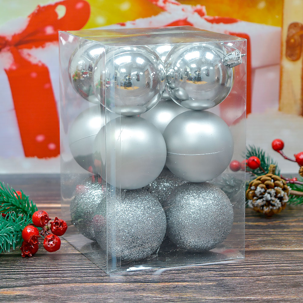 Шар новогодний 12шт 6см, цвет серебро, пластик