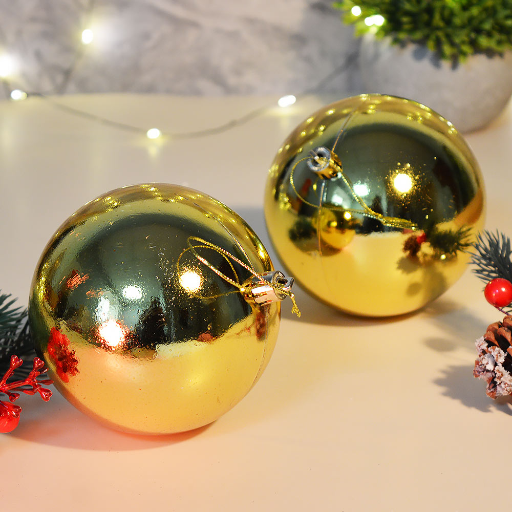 Шар новогодний 2шт 10см глянцевый, цвет золото