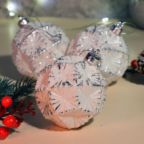 Шар новогодний 3шт 8см "Морозный узор" цвет красный