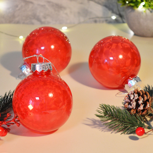 Шар новогодний 3шт 8см "Морозный узор" цвет красный