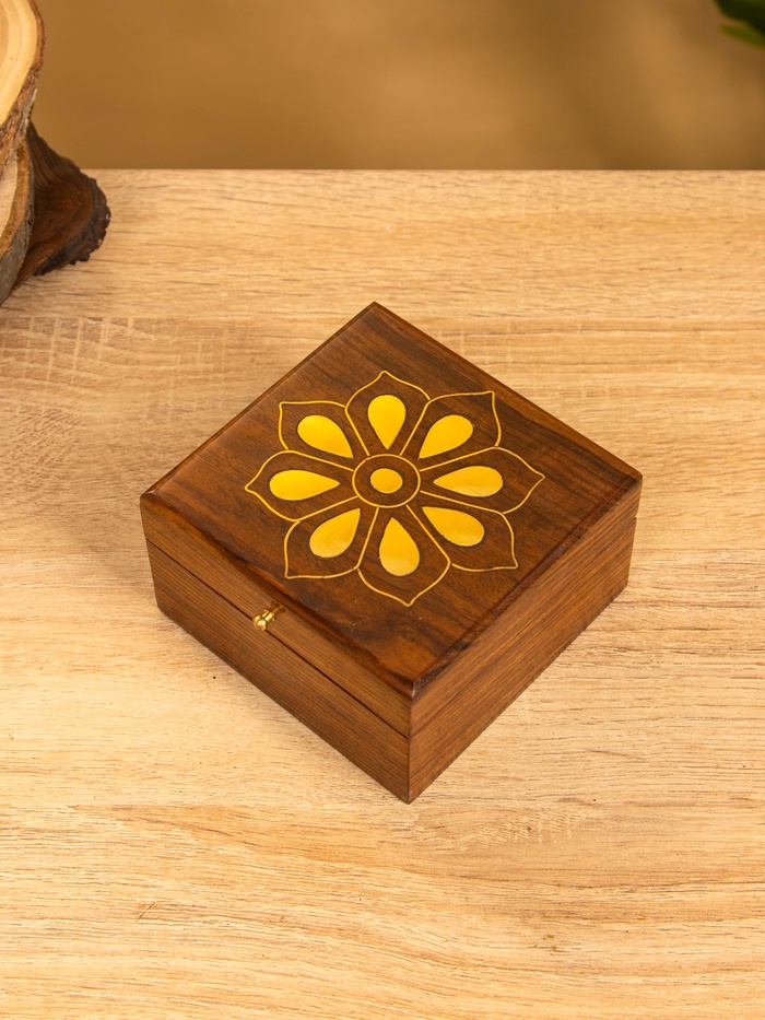 Шкатулка «Цветок», 10×10×6 см, дерево шишам