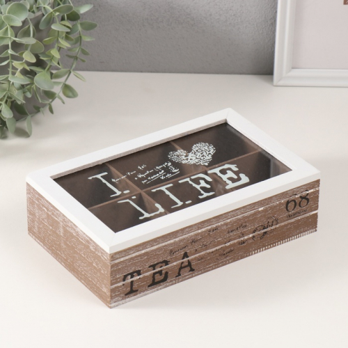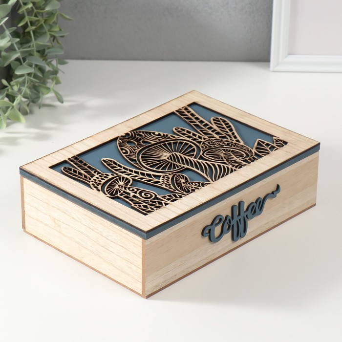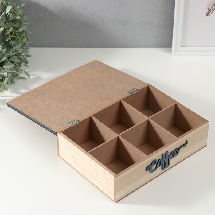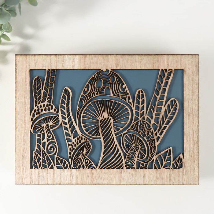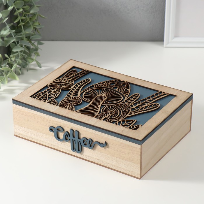 Шкатулка для чая 6 делений «Грибы», дерево, бежево-синяя, 17×24×7 см