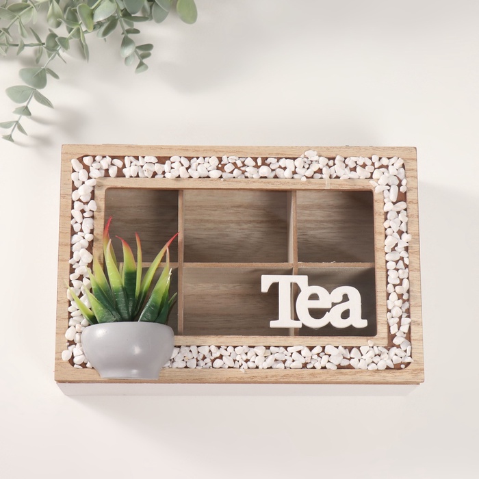 Шкатулка для чая с делениями «Чай. Кактус в горшочке», дерево, 16×23.5×9.5 см
