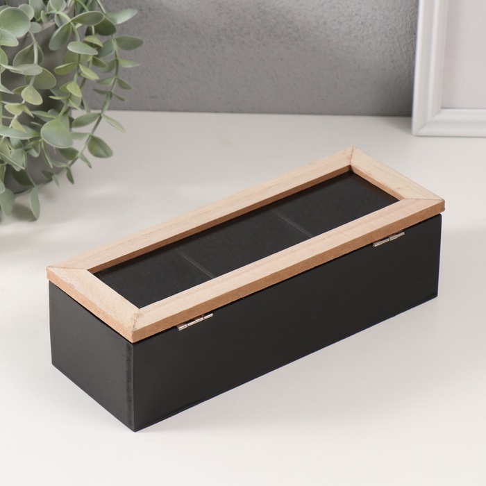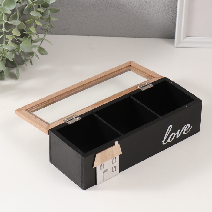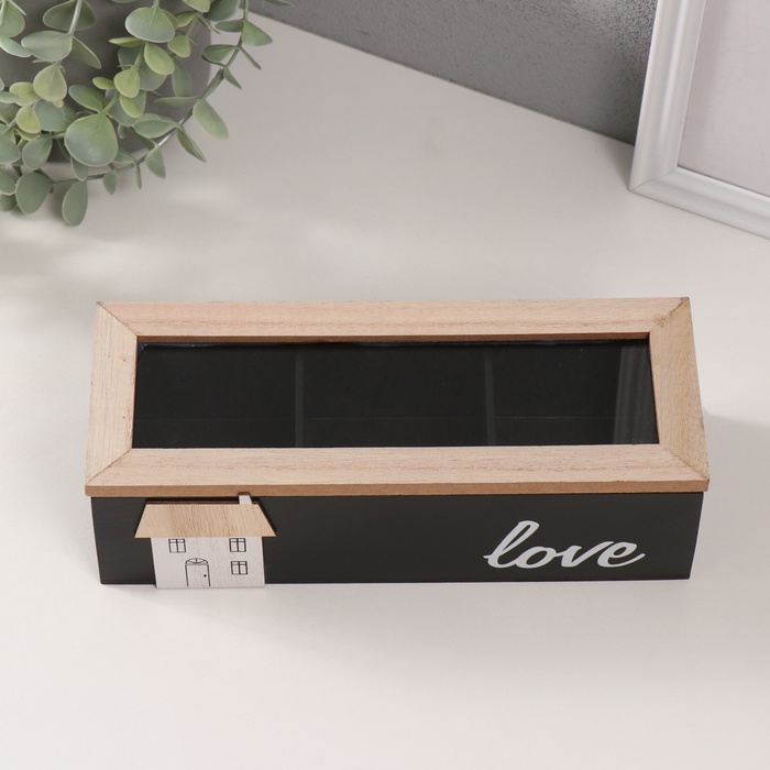 Шкатулка для чая с делениями «Домик», дерево, чёрная, 23.7×9.5×7.5 см