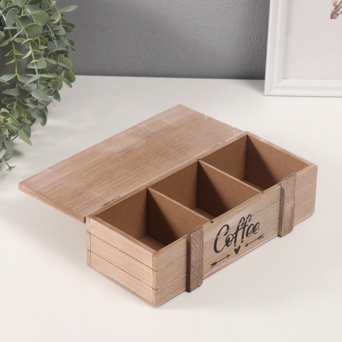 Шкатулка для чая с делениями «Кофемолка», дерево, 10.5×24×7.5 см