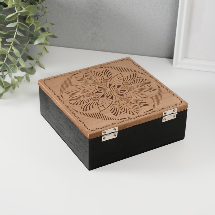 Шкатулка для чая с делениями «Мандала. Релакс и наслаждение», дерево, 16.5×16.5×6.5 см