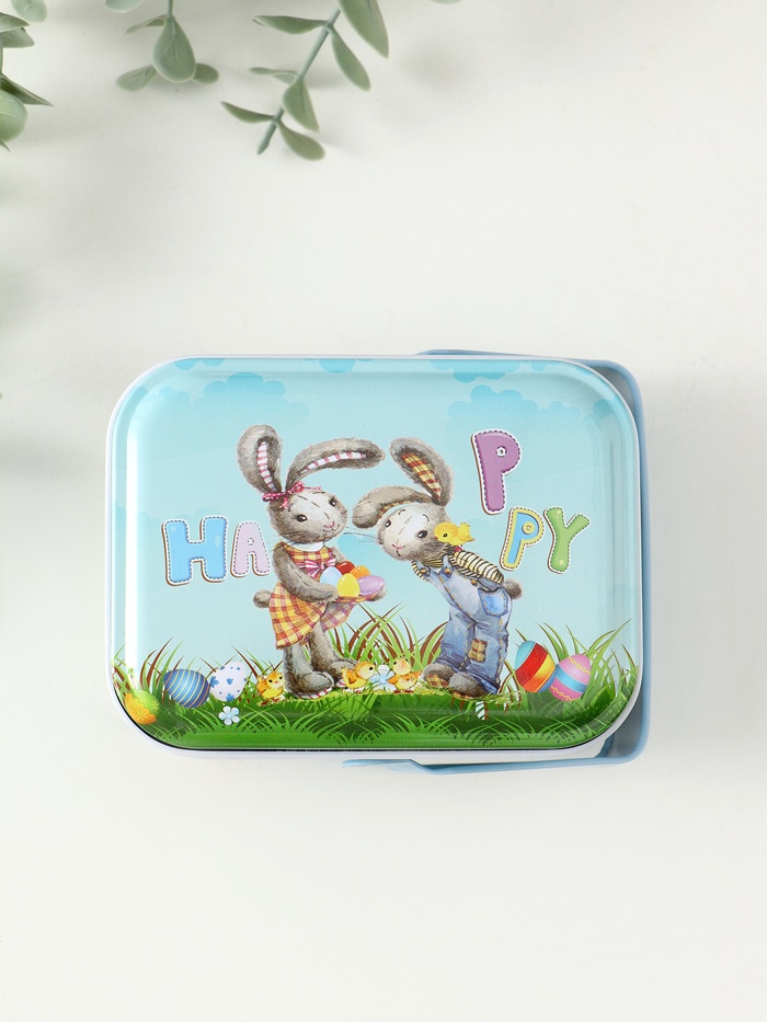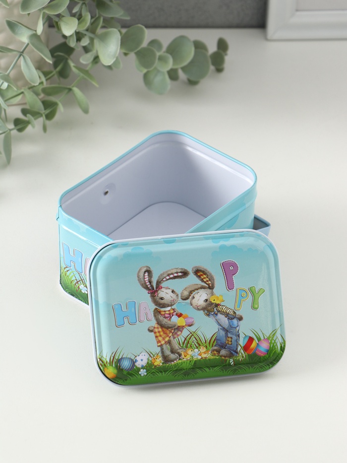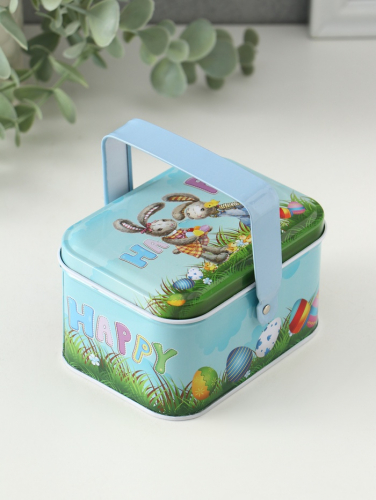 Шкатулка для хранения мелочей, украшений с ручкой «Крольчата с яичками», металл, 6×10.5×8 см