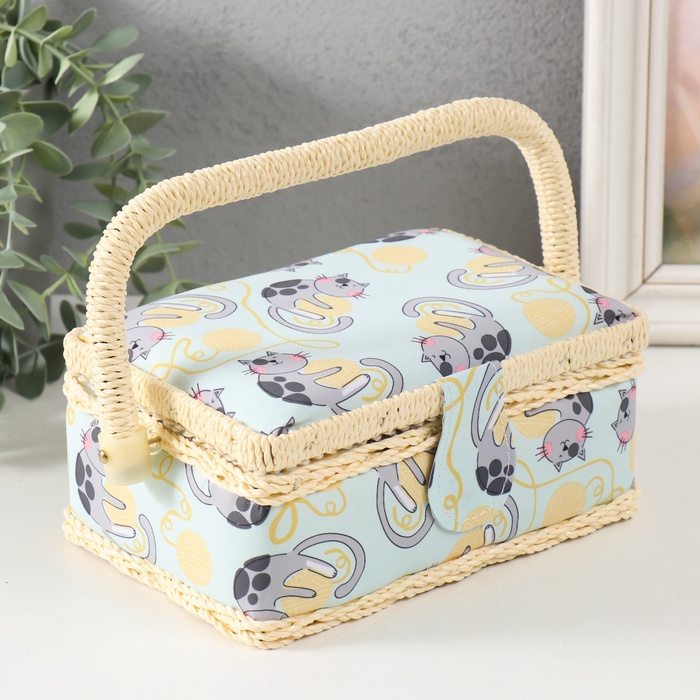 Шкатулка для рукоделия и шитья «Котята на клубках», хранение ниток, иголок, мелочи, 18×12×9.5 см
