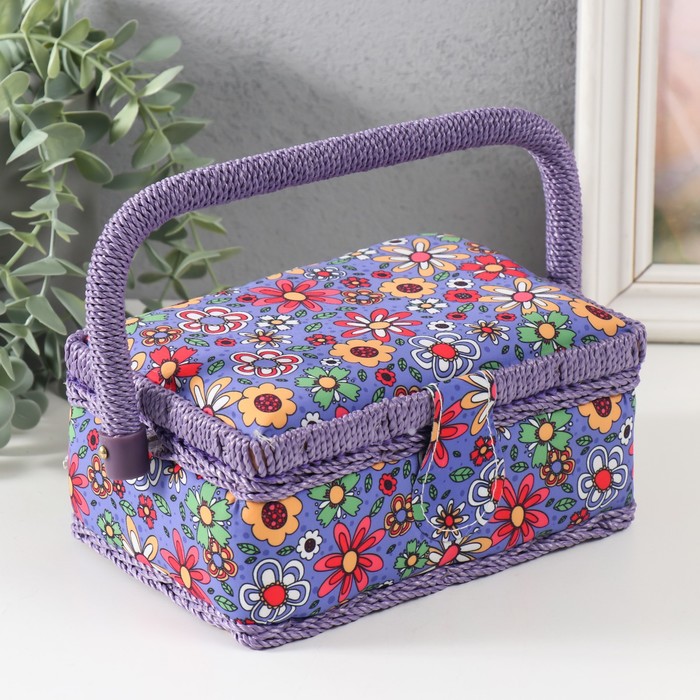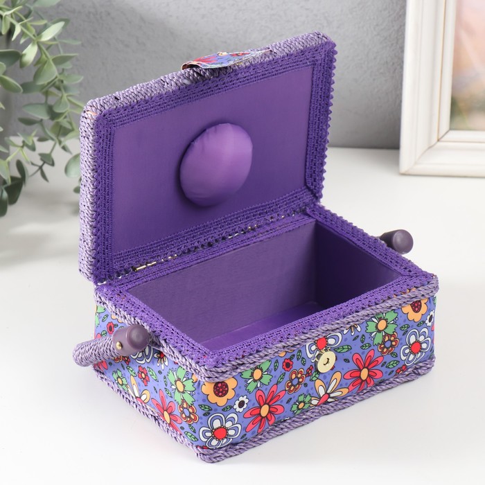 Шкатулка для рукоделия и шитья «Нарисованные цветы на синем», хранение ниток, иголок, мелочи, 18×12×9.5 см