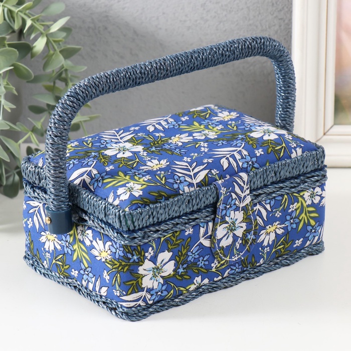 Шкатулка для рукоделия и шитья «Полевые цветы на синем», хранение ниток, иголок, мелочи, 18×12×9.5 см