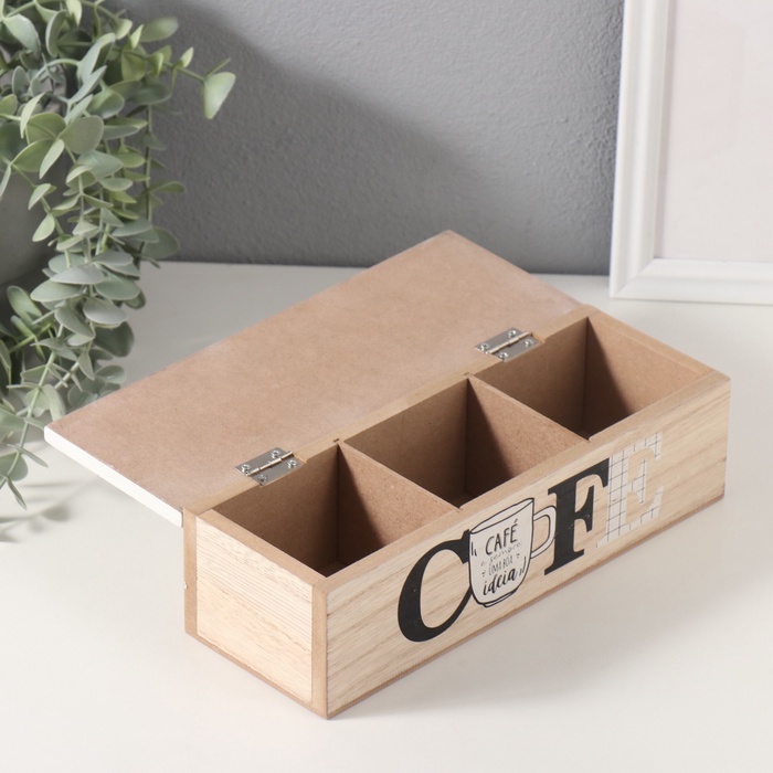 Шкатулка для украшений 3 деления «Кофе из Испании», дерево, 8.5×23.7×7 см