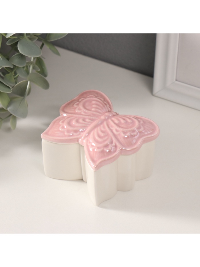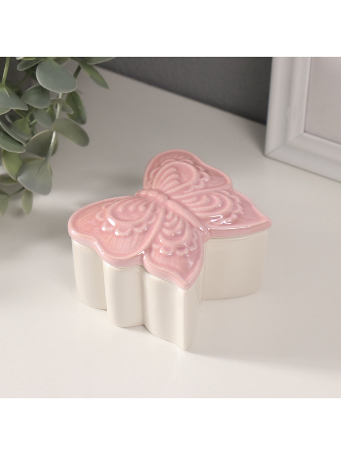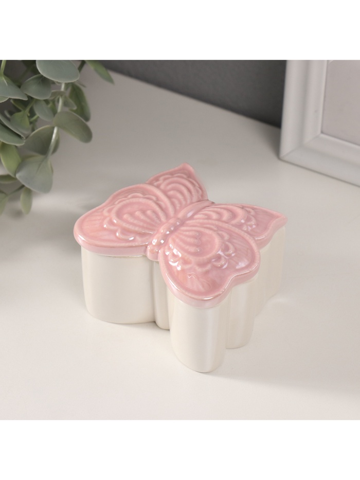 Шкатулка для украшений «Бабочка фигурная», керамика, розовый перламутр, 7.3×7.3×4.5 см