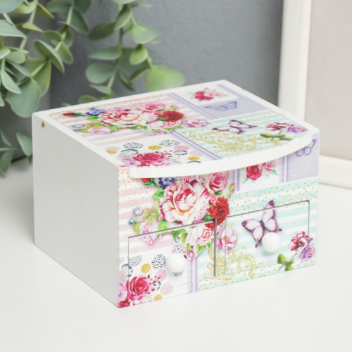 Шкатулка для украшений «Бабочки и розы», с зеркалом, дерево, 10.5×10.8×7 см