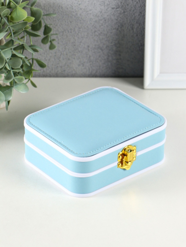 Шкатулка для украшений Giulia, пластик, кожзам, 6 ячеек, 10 полос, голубая, 13.5×11.5×5.5 см