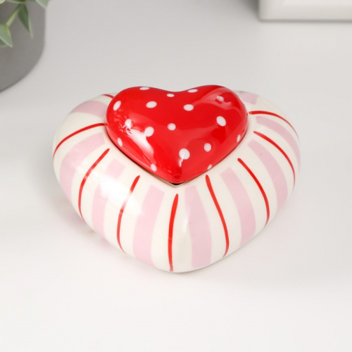 Шкатулка для украшений «Красное сердце в горошек, полосатое», керамика, 10.2×10×5 см