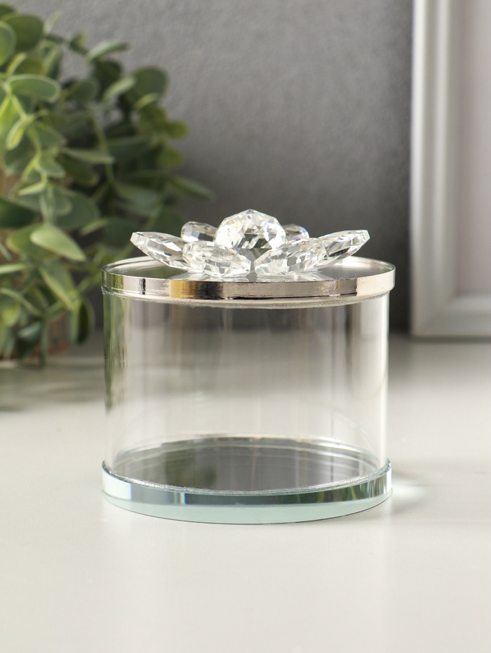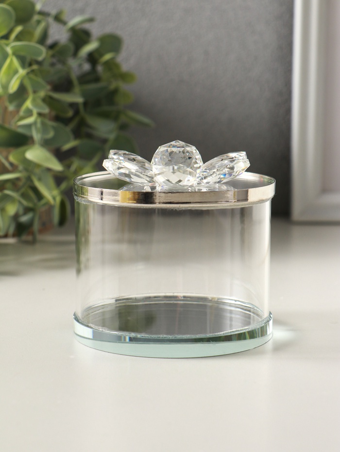 Шкатулка для украшений «Лотос», стекло, с крышкой и металлическим ободком под серебро 8.2×8.2×8.5 см