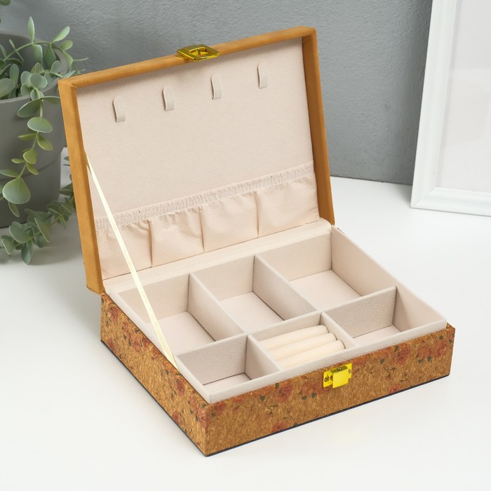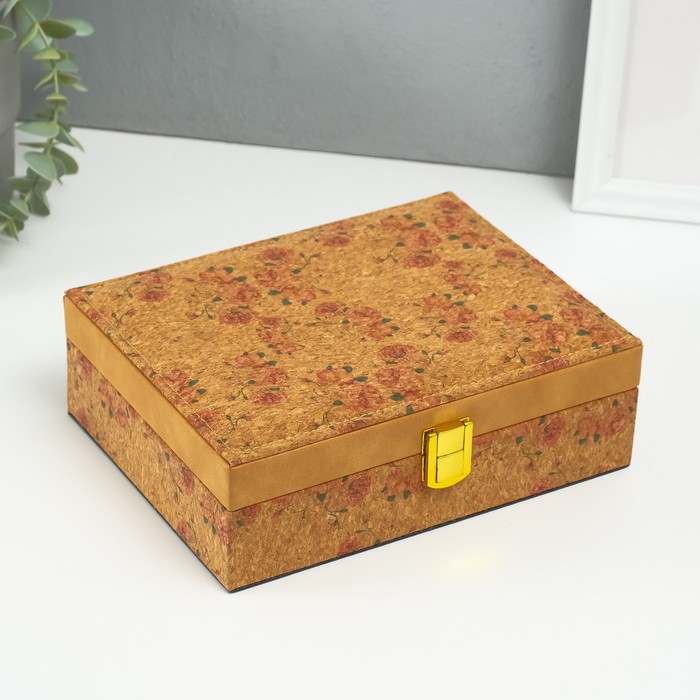Шкатулка для украшений «Нежные розы», искусственная кожа, с замком, 16.5×21.5×7 см
