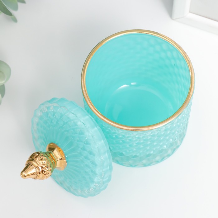 Шкатулка для украшений «Ромбы и купол», стекло, голубой с золотом, 14×8.2×8.2 см