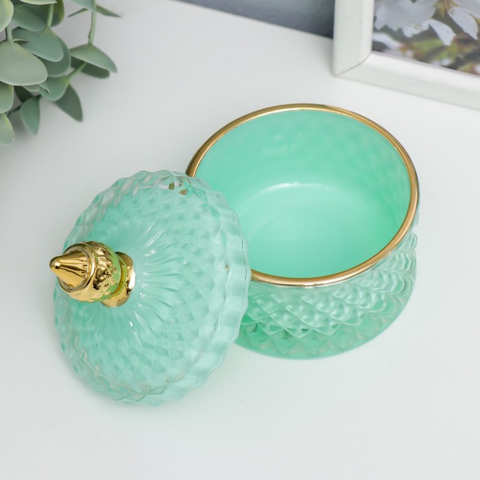 Шкатулка для украшений «Ромбы и купол», стекло, мятный с золотом, 9.5×8.5×8.5 см