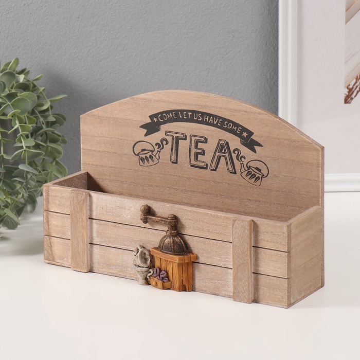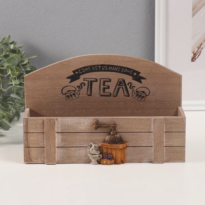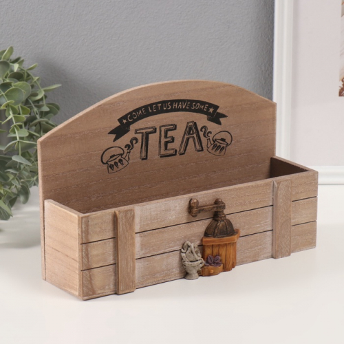 Шкатулка для украшений с делениями «Чай и набор для варки кофе», дерево, 7×26.5×17 см