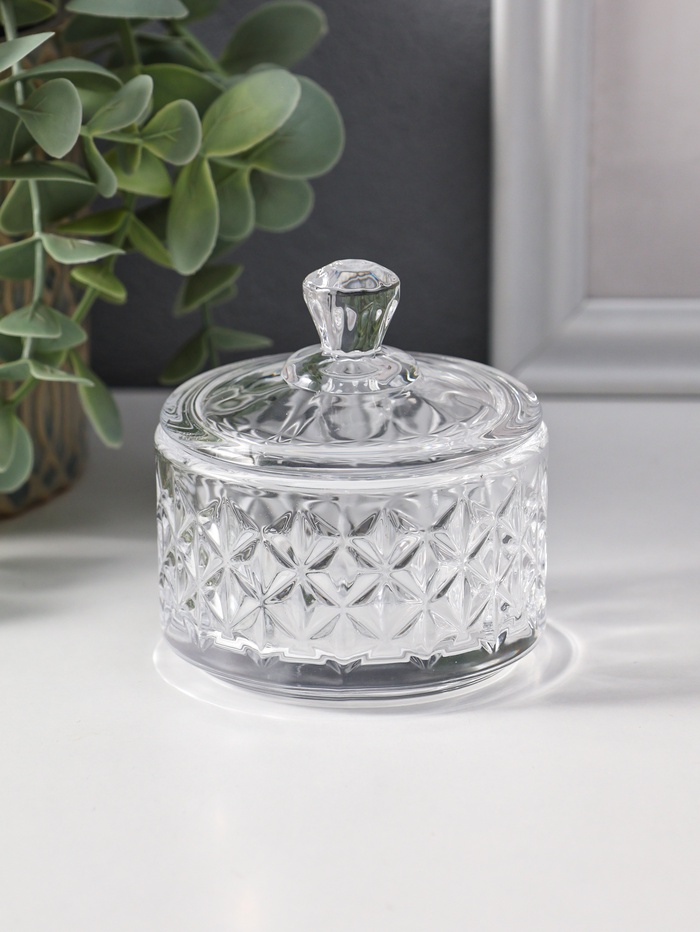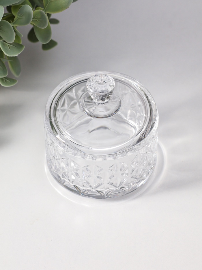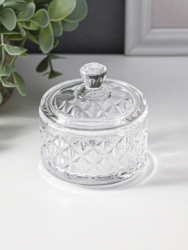 Шкатулка для украшений с крышкой «Ромбы и бриллиант», стекло, прозрачная, 6.5×6.5×7 см