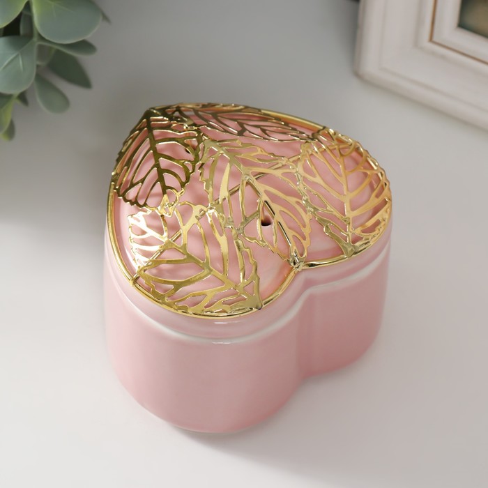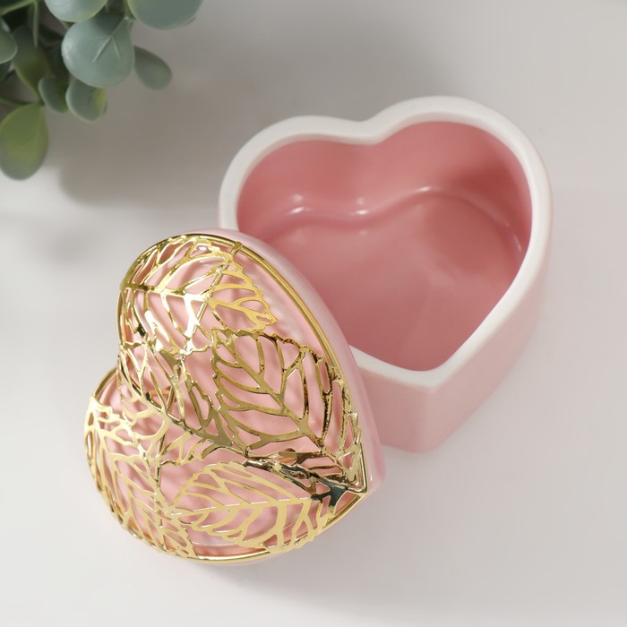 Шкатулка для украшений «Сердце с листьями», для мелочи, керамика, металл розовая, 9×8.5×7.2 см