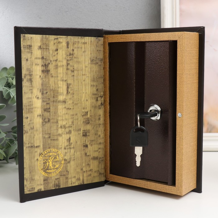 Шкатулка книга - сейф «Апполон», дерево и искусственная кожа, с замком, 21×13×5 см