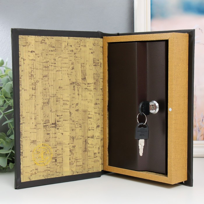 Шкатулка книга - сейф «Геометрия», дерево, искусственная кожа, зеркало 24×16×5 см