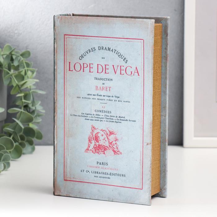 Шкатулка книга - сейф «Лопе де Вега. Драматические произведения», дерево, искусственная кожа, серая, 21×13×5 см
