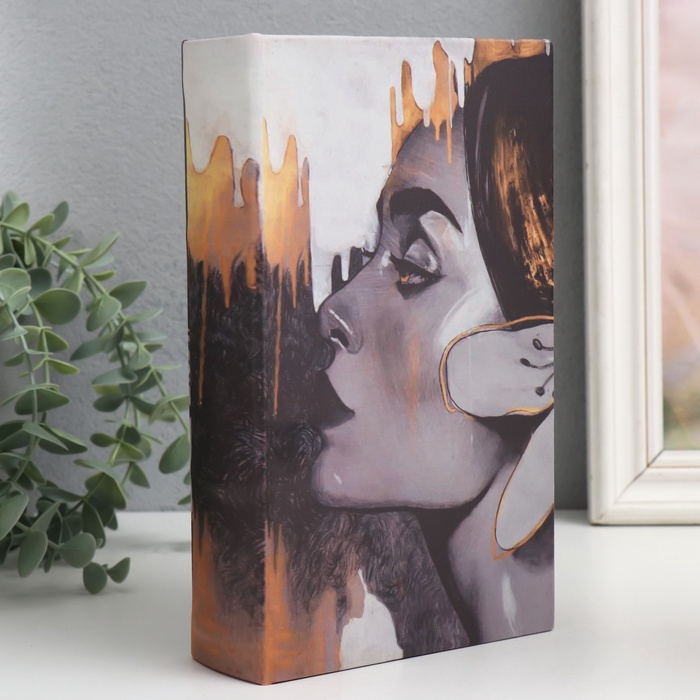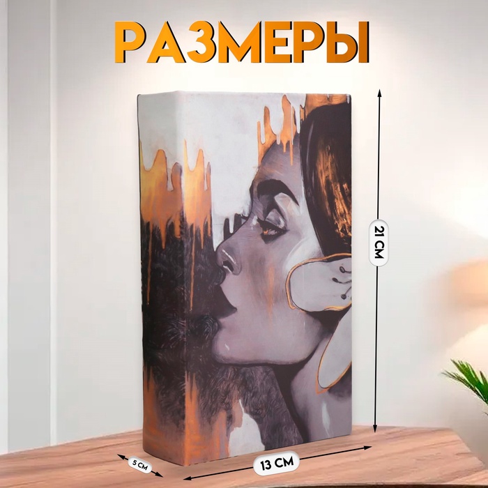 Эта шкатулка-сейф в виде книги станет изящным хранилищем для ценных мелочей. Под обложкой из искусственной кожи скрывается прочный деревянный короб с надежным замочком. Абстрактный профиль на обложке добавляет изделию художественную ценность, превращая его в стильный аксессуар для интерьера.