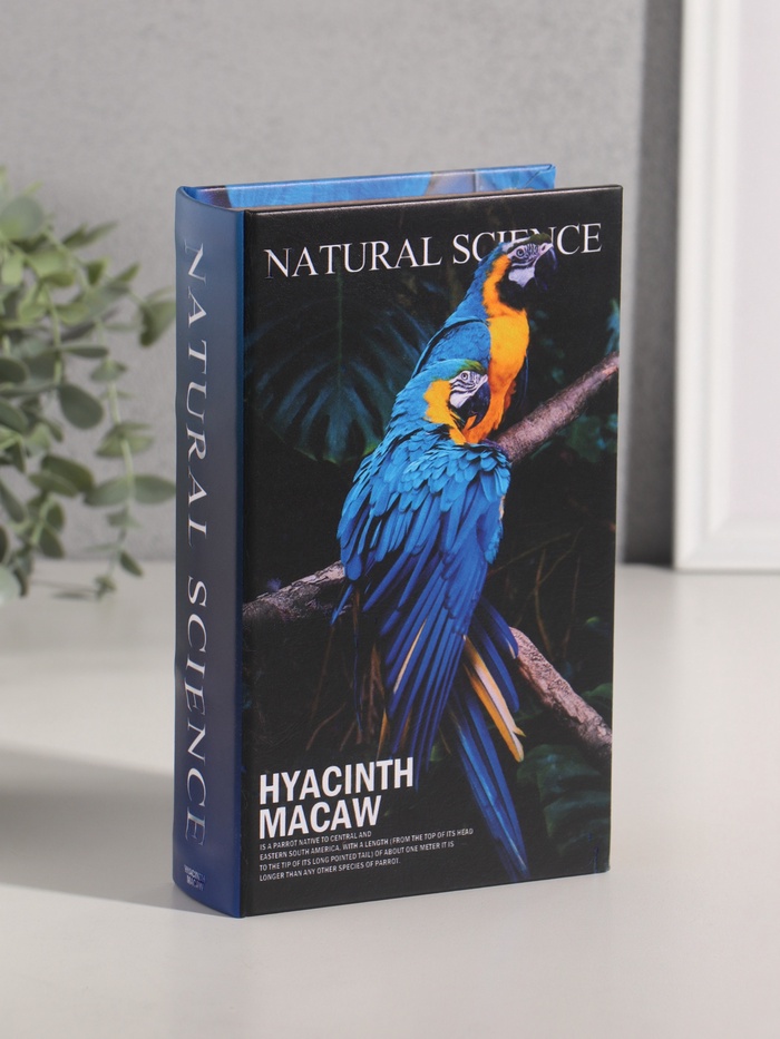 Шкатулка книга - сейф «Птицы. Гиацинтовый ара» дерево, искусственная кожа, 21×13×5 см