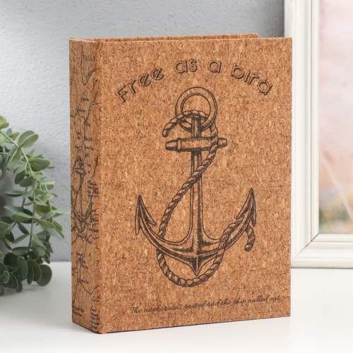 Шкатулка - книга «Якорь», дерево и искусственная кожа под пробку, 6×18×24 см